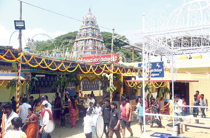 The festivities began at 6 am today with the performance of the first Abhisheka following which Kankana was tied on all four directions of city and various rituals for Sri Chamundeshwari and Sri Mariyamma were performed. A procession of Sri Chamundeshwari Karaga was taken out from the foot of Chamundi Hill to the temple at 11 am today.
