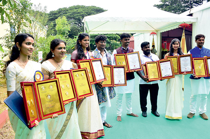 P. Puneetha (Karnatak Vocal – 4 gold medals), M. Sanjay (Hindustani Vocal – 2 gold medals) and M.B. Sujana (Bharatanatyam – 1 gold medal).