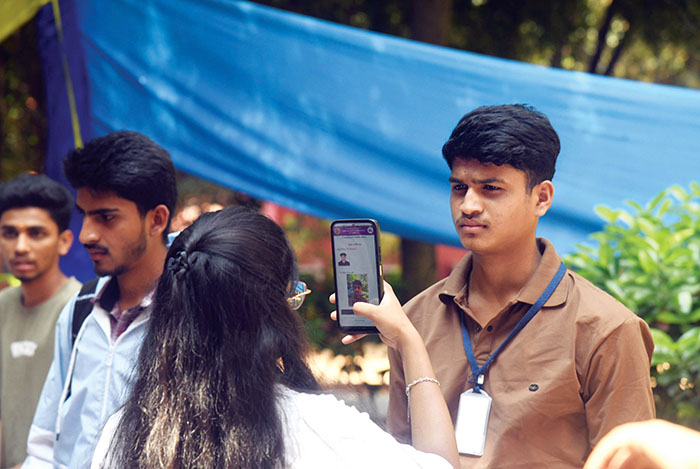 Mysore/Mysuru: A total of 17,736 students appeared for the Under Graduate Common Entrance Test (UG-CET) conducted by Karnataka Examinations Authority (KEA) at 36 centres across the city this morning. The students, on arrival at the examination centres, were checked thoroughly by Police personnel using metal detectors at the entrance. Following this, the students were subjected to face recognition through a mobile application to ensure only the registered candidates were appearing for the examination. The authorities had also set up 36 flying squads, which were seen visiting different centres across the city.