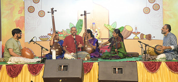 Theatre songs by Chandrashekar Achar at 5.30 pm; Nadaswara-Violin Jugalbandi by Nemmara Brothers (Vid. Nemmara Kannan & Vid. Nemmara Anand Brahma) and Akkarai Sisters (Vidu. Akkarai Subhalakshmi and Vidu. Akkarai Sornalatha), accompanied by Vid. Jayachandra Rao on mridanga and Vid. Chandrashekar Sharma on ghata at 6.45 pm.