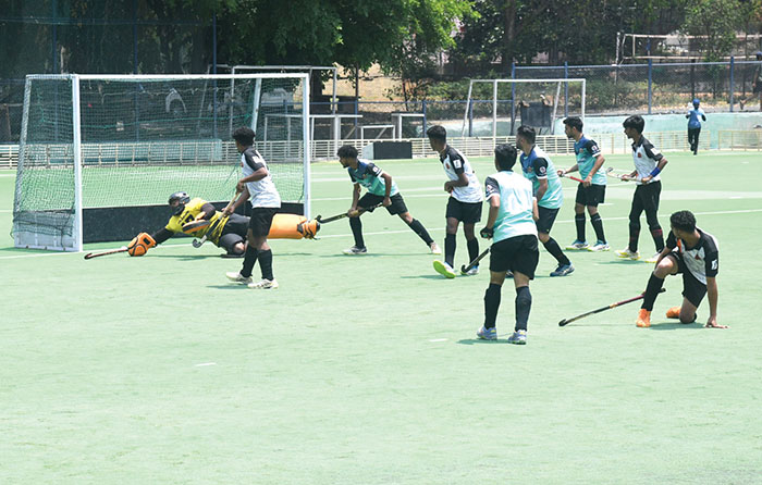 Picture shows hockey teams ‘Dominators White’ and ‘Morning Boys’ in action.