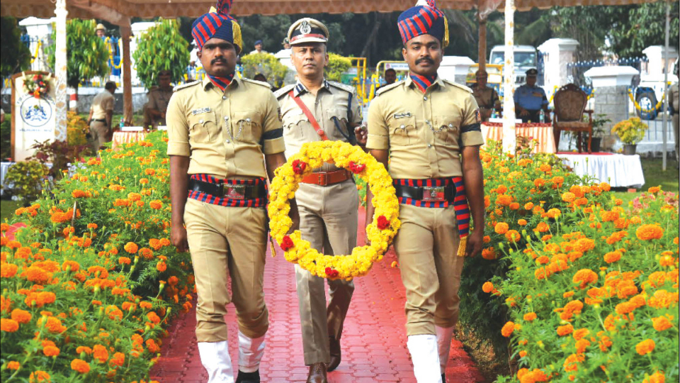 Earlier, DIGP Dr. Boralingaiah, City Police Commissioner Seema Latkar, Superintendent of Police (SP) N. Vishnuvardhana, DCP (Law and Order) R.N. Bindu Mani, DCP (Crime and Traffic) K.S. Sundar Raj, Group Captain Billore Hemanth Kumar (Chief Administrative Office, Air Force Selection Board-2, Mysuru), Additional SP C. Mallik, KARP Mysuru Commandant A. Maruthi, DCP (CAR) Siddana Gowda Patil, Karnataka State Industrial Security Force (KSISF) Mysuru Commandant Mahadeva Prasad, KSRP Mysuru Commandant K.B. Doremani Bheemaiah, Traffic ACP Shivashankar, ZP CEO S. Ukesh Kumar and Mysuru City Corporation (MCC) Commissioner Shaikh Tanveer Asif and several other invitees laid the wreaths on Martyr’s Memorial.
