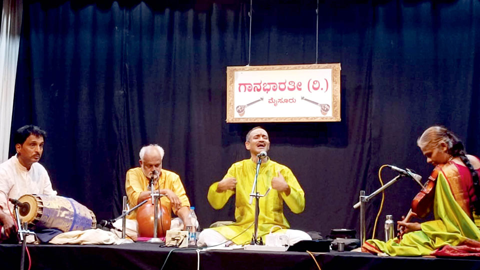 Ganabharathi of Mysuru had organised a memorable vocal concert on June 13 in tribute to Vasudeva Udupa, a Founder-Member of the organisation. The event, held at Veene Seshanna Bhavana in Kuvempunagar, drew a packed audience — clearly reflecting the popularity of the young and dynamic vocalist, Vid. Pattabhirama Pandit. Concert was sponsored by Raghavendra Udupa.