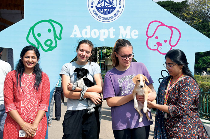Mysore/Mysuru: Following Supreme Court directives for better management of stray dogs, the Mysuru City Corporation (MCC), People For Animals (PFA) and Animal Husbandry Department had jointly organised a stray puppies adoption programme at Town Hall premises in city this morning.