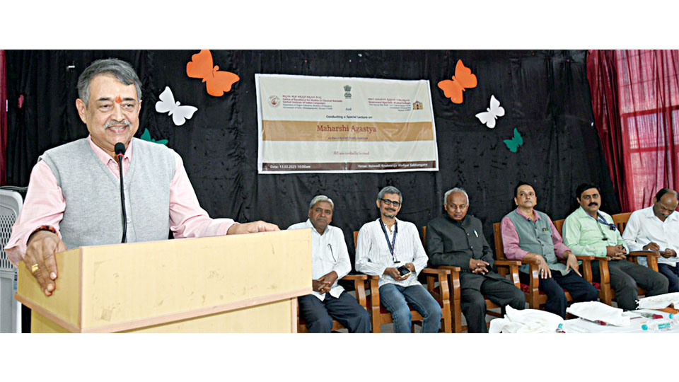 Sham Bhat was delivering a special lecture on the topic ‘Indian traditional knowledge and Maharshi Agastya,’ at a programme organised jointly by the Government Ayurveda Medical College and Hospital, Centre of Excellence for Classical Kannada Studies (CECKS) and Central Institute of Indian Languages (CIIL), as part of Kashi Tamil Sangam at Government Ayurveda Medical College and Hospital premises on Sayyaji Rao Road here recently.