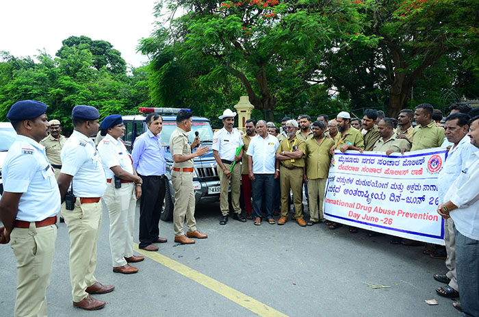 Mysuru:  Marking the International Day Against Drug Abuse and Illicit Trafficking, the City Police, in association with other organisations, took out an anti-drug abuse rally here this morning.