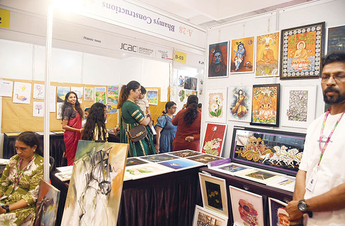 Artist Leelavathi’s Mysore Style Paintings, made using 24-carat gold foil, that enjoyed patronage during the reign of erstwhile Maharaja of Mysore, Mummadi Krishnaraja Wadiyar, is the highlight of Chitra Santhe. The paintings featuring deities like Krishna, Saraswati and Ganesha, various species of birds are on display cum sale here. It is a time-consuming job, with the price of paintings ranging from Rs. 60,000 to Rs. 70,000. Artist Mohankumar has various paintings, with price tag of Rs. 500 to Rs. 5 lakh, catering to the need of art lovers.
