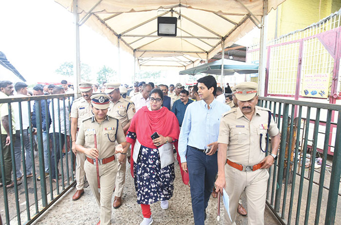 DC G. Lakshmikanth Reddy inspected the preparations this morning, along with Mysuru City Corporation (MCC) Commissioner Shaikh Tanveer Asif, Zilla Panchayat Chief Executive Officer (CEO) S. Ukesh Kumar, City Police Commissioner Seema Latkar, DCP (Crime & Traffic) K.S. Sundar Raj, Sri Chamundeshwari Temple Development Authority Secretary M.J. Roopa, Information & Public Relations Department Assistant Director T.K. Harish Kumar and other officials.