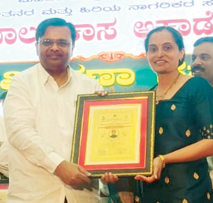 The ceremony was held last month at the Suvarna Soudha in Belagavi and the award was presented in the presence of Women and Child Development Minister Lakshmi Hebbalkar, Bal Vikas Academy President Sangamesh Babaleswar and several other dignitaries.
