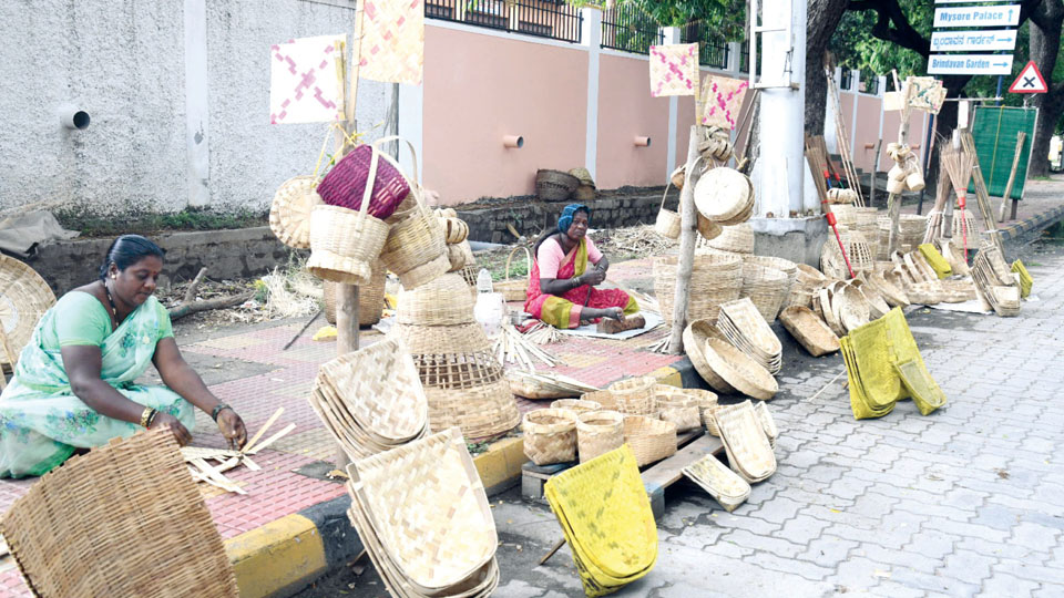 Mysore/Mysuru: The Medar community, known for its traditional bamboo craftsmanship, has been creating household articles for decades. Their products — winnows, baskets, brooms, flower vases and more — continue to find use in homes across the State and country. Yet, despite their artistry, the community lacks proper spaces to sell their wares.