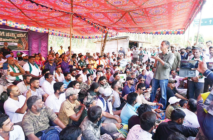 Noted wildlife photographers and conservationists Krupakar and Senani, Joseph Hoover, Saptha Girish, Ravi Keerthi, village heads and representatives of over 123 villages surrounding Bandipur and former Bandipur Director T. Balachandra took part in the protest.