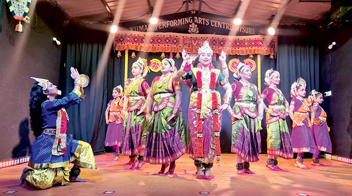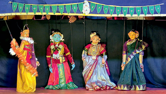 CLOCKWISE FROM TOP LEFT: The students of Shakti School of Bharatanatyam, Los Angeles, USA, founded by senior dance guru Viji Prakash, presenting a special Bharatanatyam dance programme titled ‘Samarpan’ at Kumar Performing Arts Centre (KPAC) in Hebbal 2nd Stage on Dec. 28, 2025, as part of the 67th International Special Nirantara Kalemane Festival. ‘Salake Sutrada Bombeyata’ by the artistes of Sutramela Puppet Theatre, Bengaluru, featuring the story of ‘Sri Krishna Parijata,’ directed by Ravindra Narahari. Dance-feature ‘Bhagavad Gita Vshwaroopa Darshana’ by the students of Aarathi Arun, Director and Guru of Sri Ganesha Sangeeta Nrityalaya Charitable Trust, Mysuru.