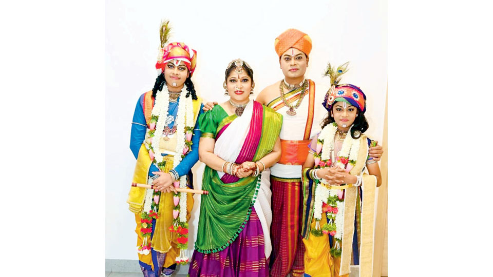 Mysuru: Celebrity Bharatanatyam artistes Badari Divya Bhushan, Dr. Anjana Bhushan, along with their sons Abhyuday Dhyan Bhushan and Abhignan Vedant Bhushan, will be performing for Ramotsava organised by Sree Jayaramaseva Mandali, Jayanagar, Bengaluru, tomorrow (Apr. 13) from 6.30 pm to 8.30 pm. They will be presenting their acclaimed Bharatanatyam Musical Dance Theatrical ‘Ramabhyudayam.’
