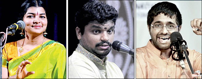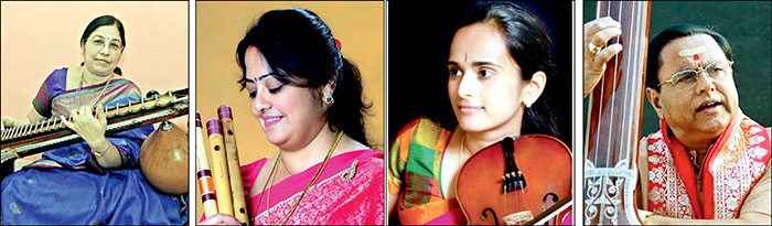 Apr. 9: A special all-women ensemble performing a veena, venu, violin trio. Vidu. J. Yoga Vandana on veena, Vidu. Smitha Srikiran on venu (flute), Vidu. Aditi Krishnaprakash on violin will be accompanied by Vidu. Deepika Srinivasan on mridanga, Vidu. Latha Ramachar on kanjira and Vidu. Bhagyalakshmi Krishna on morching.