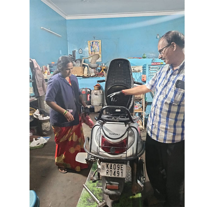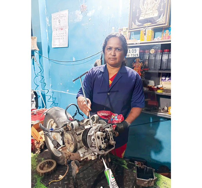 Today, Sumithra can handle all scooter repairs, from minor fixes to complex engine overhauls. “If you are determined to take up the challenge, success is guaranteed,” she says, tightening a bolt with a practiced grip.