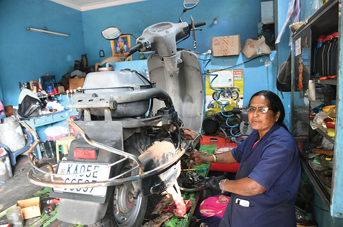 For the past four years, Sumithra has been repairing scooters at Suchithra Auto Service Centre on Basaveshwara Road, defying the conventional belief that mechanics is a male-dominated domain.