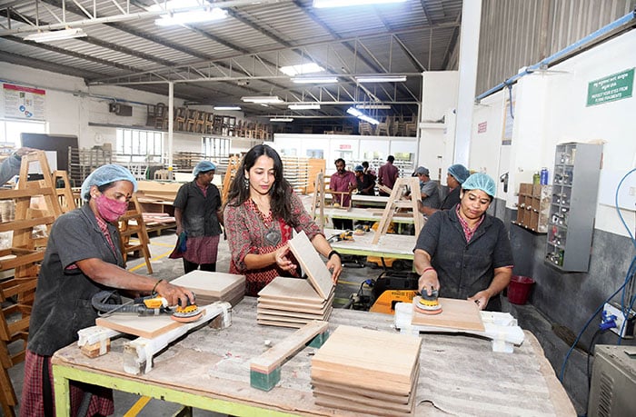 Alifiya Vagh seen at the floor of Mas Furniture factory on Hunsur Road in Mysuru.