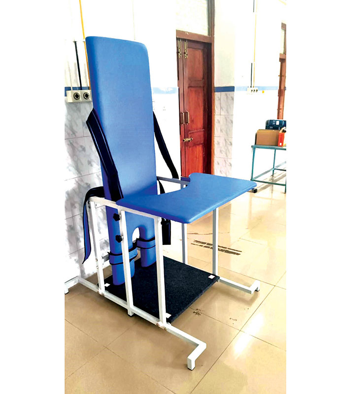 The equipment includes automatic and rehabilitation treadmills, recumbent cycles, cross trainers, upper and lower extremity exercisers, elliptical trainers, dumb-bell sets, exercise and gym balls, oxygen cylinder sets, parallel bars, staircase strainers, postural drainage treatment tables, standing frames, multi-exercise chairs and motorised tilt tables.