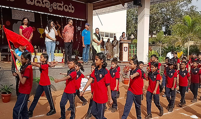 Students presented an impressive march-past, representing the four Houses of BSS Vidyodaya — Abhimanyu, Dhruva, Nachiketha and Prahalada.