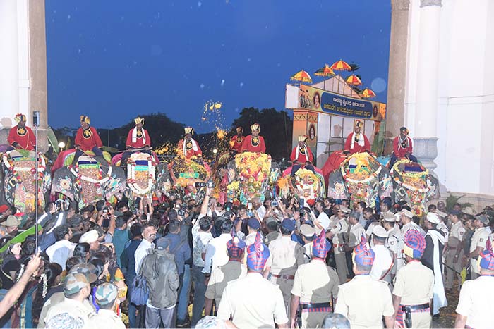 City Police provided security to the Dasara elephants during their march from Aranya Bhavan to Mysore Palace. Minister K. Venkatesh, MLAs G.T. Devegowda, Tanveer Sait and T.S. Srivatsa, MLC Dr. D. Thimmaiah, Karnataka Exhibition Authority (KEA) Chairman Ayub Khan, Guarantee Schemes Implementation Authority Vice-Chairperson Dr. Pushpa Amarnath, Deputy Commissioner (DC) and Dasara Special Officer G. Lakshmikanth Reddy, Additional DC Dr. P. Shivaraju, Zilla Panchayat CEO S. Ukesh Kumar, Mysore Palace Board Deputy Director T.S. Subramanya, Deputy Conservator of Forests (DCF-Wildlife) Dr. I.B. Prabhugowda, City Police Commissioner Seema Latkar, Superintendent of Police (SP) N. Vishnuvardhana and others were present.