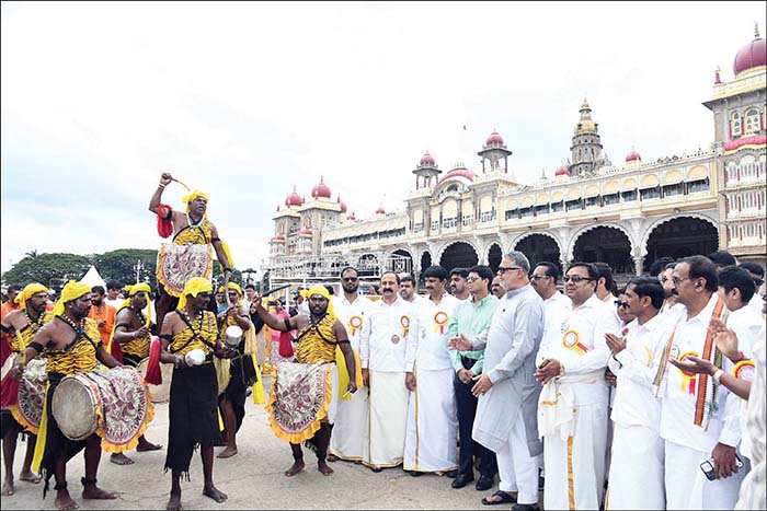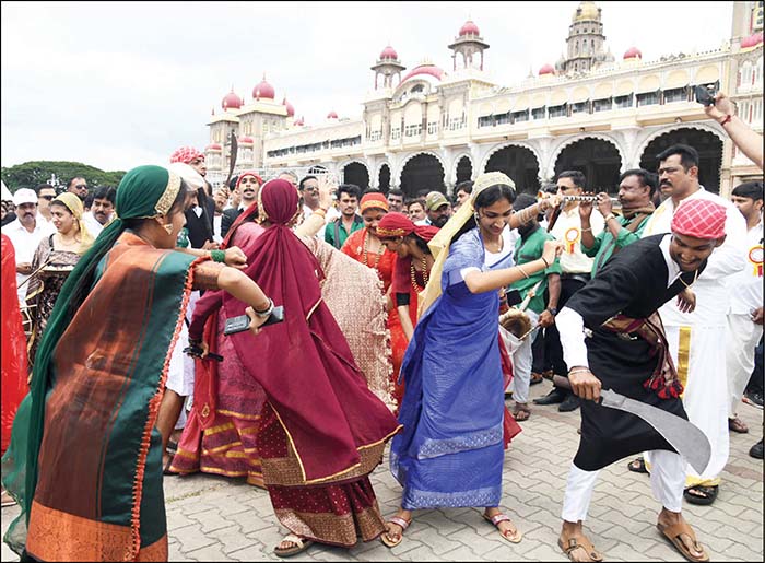 The District Administration, in association with several other organisations and stakeholders of tourism industry, had organised a procession of cultural troupes from Mysore Palace premises to major thoroughfares across the city.