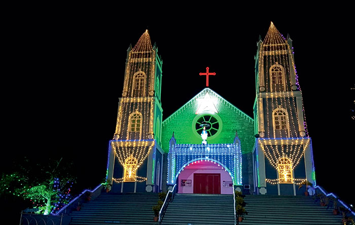 Built in 1936 in the Neo Gothic style, designed by Frenchman Daly and inspired from the Cologne Cathedral in Germany, St. Philomena’s Church, the imposing Church in city, is beautified and decorated for the X-mas season to attract devotees.