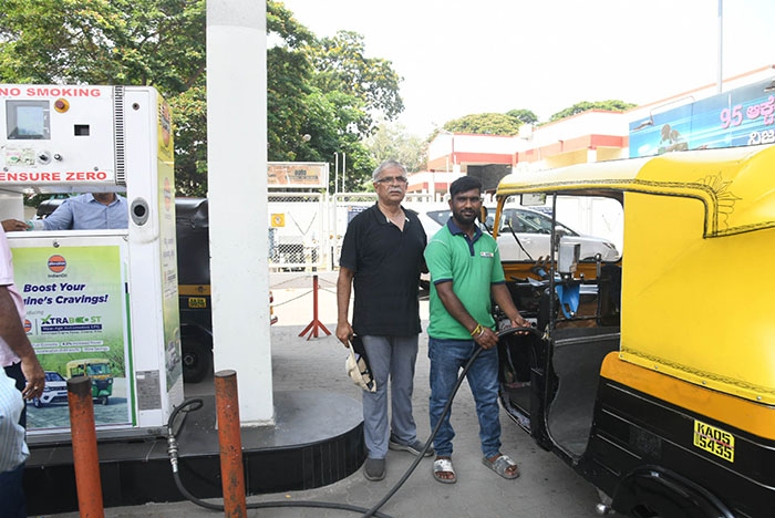 With fresh stock arriving yesterday, word spread quickly among drivers, leading to long queues of autos stretching nearly 1-km, from Dhanvantri Road through JLB Road, Field Marshal K.M. Cariappa Circle, Dewan’s Road and up to Shivarampet Junction near Nanjaraja Bahadur Choultry.