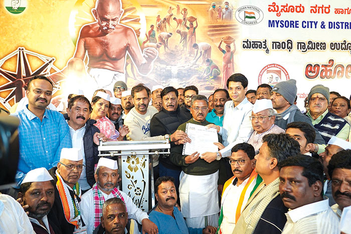 Addressing the protesters, KPCC Vice-President and former  MP V.S. Ugrappa said, the Congress-headed UPA Government with Dr. Manmohan Singh as the Prime Minister introduced MGNREGA in 2005 in order to provide employment to the rural masses. “But now, PM Modi-led NDA Government has not only replaced the scheme with VB-G RAM G, but also changed the very nature and character of the scheme itself, which has deprived the rural population of jobs. As per the new Act, it is not the Gram Panchayats which decide on jobs, but the Union Government itself, which is ridiculous,” he maintained.