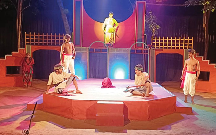Mysore/Mysuru:The students of Bharatiya Rangashikshana Kendra of Rangayana, Mysuru, last evening brought alive on stage the episodes the peak and end of the rule of Dalavai Vikramaraya of the Mysore State.