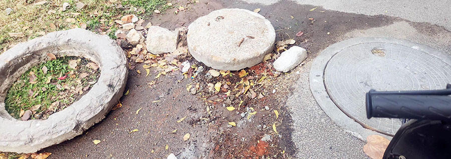 Over the last few days, it appears the same person has placed old manhole covers dangerously on this spot, putting the public at risk, merely to protect his UGD pipeline.