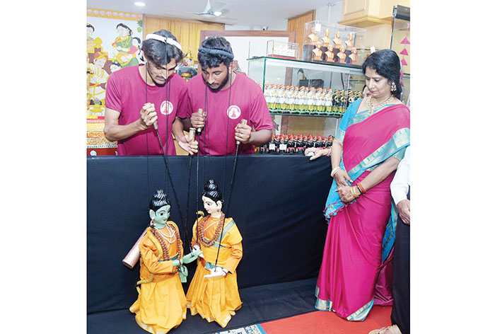 Srikanth Sharma from Bombe Rangamandira in city, presented some of sequences of Ramayana through salaake bombeyaata, a form of puppet show.