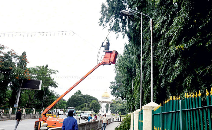 Mysore/Mysuru: With 19 days left for the inauguration of Dasara festivities on Sept. 22, the District Administration is preparing to host the annual festival, without compromising on any front including pruning trees along the procession route.