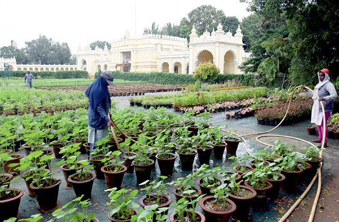 Besides, the gardeners are involved in watering flower pots, to redo the gardens at the Palace premises that wear a new look every Dasara.