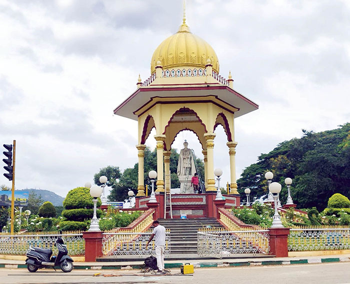 Mysore/Mysuru:  With Nada Habba Mysuru Dasara fast approaching, various Departments have taken works to spruce up the Mysore Palace premises, prominent statues and circles across the city.