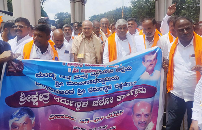 Dharmasthala:  Hundreds of JD-S (Janata Dal – Secular) party workers, led by former Ministers S.R. Mahesh and C.S. Puttaraju, yesterday took out a car rally to Shri Kshetra Dharmasthala and extended their solidarity with Dharmasthala Dharmadhikari Dr. D. Veerendra Heggade, in the backdrop of stinging allegations against the shrine, infamous as ‘Dharmasthala Mass Burial Case’ being probed by the Special Investigation Team (SIT).