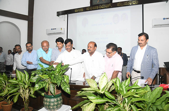 Mysore/Mysuru: District Minister Dr. H.C. Mahadevappa launched e-Pauti Khata campaign at the district-level ‘Janata Darshan’ programme for hearing public grievances at Abdul Nazir Sab auditorium in Zilla Panchayat (ZP) Office premises here on Friday.