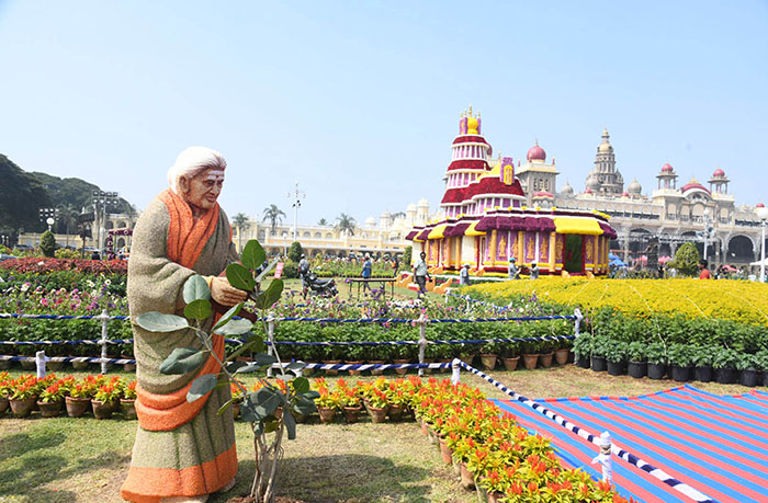 The Siridhanya made portrait of green crusader Saalumarada Thimmakka, who passed away recently, model picture of erstwhile ruler of Mysore Nalwadi Krishnaraja Wadiyar, Preamble of Indian Constitution, vegetable carvings, idols of Lord Sri Krishna and Radha on a swing, model of World Cup-winning Indian women’s cricket team and screening of visually challenged cricket players on digital screen are among other notable attractions.