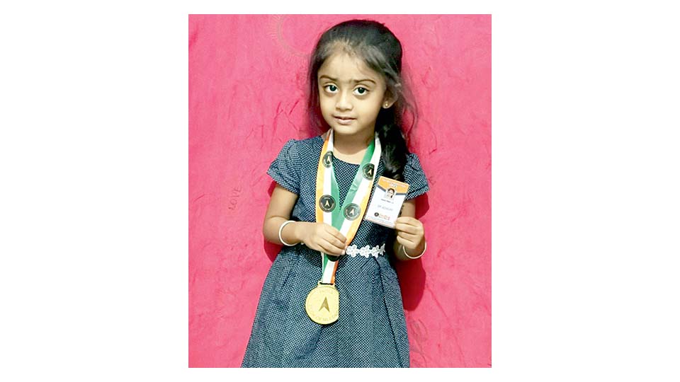 Mysuru: J.S. Salomi Sthuti has entered India Book of Record (IBR) as ‘IBR Achiever’ for reciting the names of all 28 Indian States with Capitals, 50 States of USA, 25 Countries alphabetically from A to Z and 7 Continents; counting from 1 to 10 in 8 languages, namely Sanskrit, Kannada, Hindi, Tamil, English, French, Hebrew and Arabic at the age of 3.10 years.