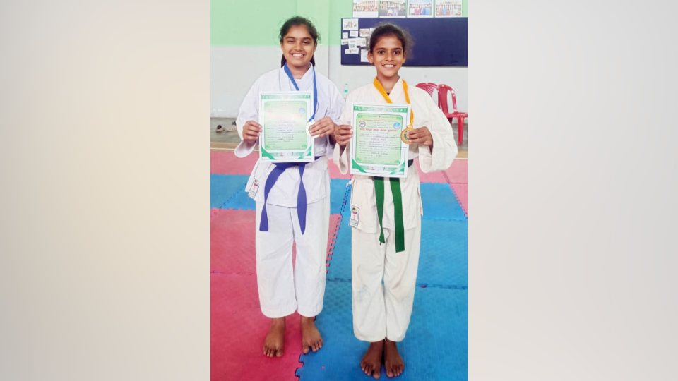 Kshamata S. Kesthur, a student of GSSS (right), won the gold medal and Vibha R. Shekar from Teresian School, bagged the silver medal at the District-Level U-14 Karate Tournament organised by the Department of School Education, in city recently. Kshamata has also been selected to represent the district at State level. Both are being trained by S. Deepak Kumar and S. Rohith at Gojukan Karate Institute in city.