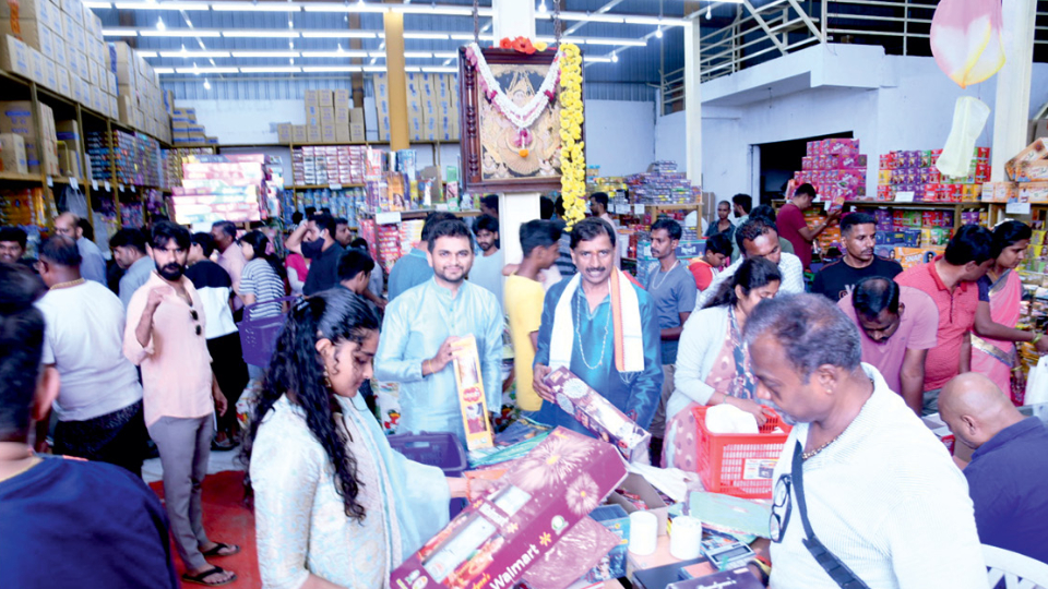 Mysuru, Oct.20 (PM,BLU &DM)- With the three-day Deepavali beginning today, festive shopping has reached fever pitch across Mysuru city, with people thronging markets to buy essentials, décor items and crackers.