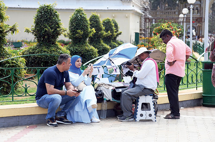 During the Dasara festival, visitor numbers rise sharply. Tourist photographers identify the best spots within the Palace grounds, frame memorable shots, click photographs and quickly provide printed copies. The smiles on tourists’ faces bring deep satisfaction to these photographers.