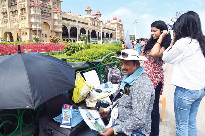 Wherever people travel in the world, buying a souvenir is customary. Even if nothing is purchased, they make sure to take a photograph so the memory of the place remains eternal. These images become beautiful chapters in the story of life. Likewise, visitors to Mysore Palace carry home special moments created with the help of 17 dedicated tourist photographers who continue their work despite challenges of modern technology.