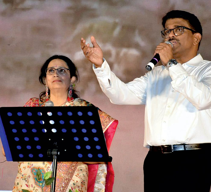 The evening commenced with a grand entry of artistes to their signature song “Gaata Rahe Mera Dil,” setting the tone for a musical journey down memory lane. This was followed by a warm welcome by Dr. Somanath.