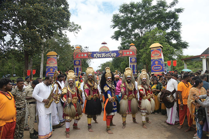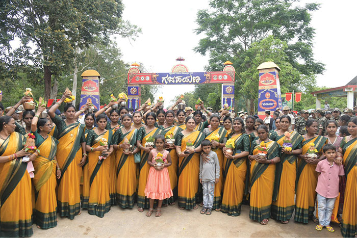 The Forest Department has arranged meals for 5,000 people. The road from Veeranahosahalli Gate to the event venue was beautifully decorated with green arches and traditional festoons, adding to the festive atmosphere.