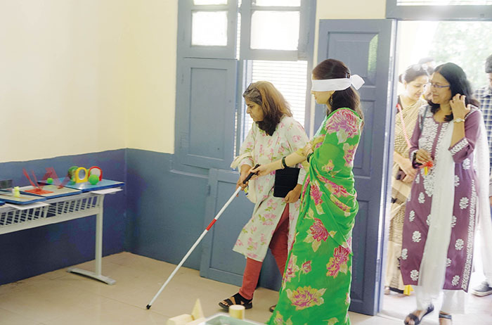 EquiBeing Foundation, which works to empower persons with visual impairment, organised the blindfold experience to simulate how visually impaired individuals navigate daily tasks.
