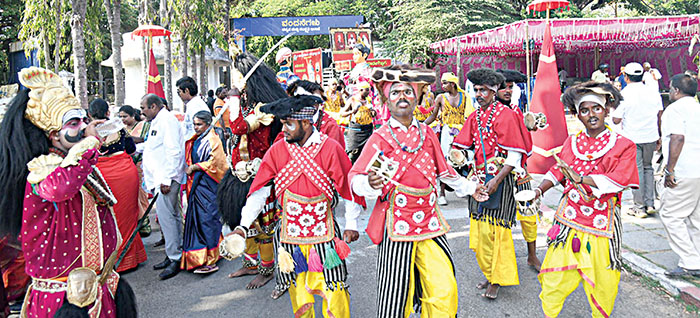 Folk art performances such as Puja Kunita, Veeragase, Gorava Kunita and Dollu Kunita added colour and vibrancy. The rhythm of drums, mangalavadya and band music created a festive mood while towering gaarudi dolls captivated onlookers. The entire procession was a befitting honour to Madegowda’s enduring legacy and public service.