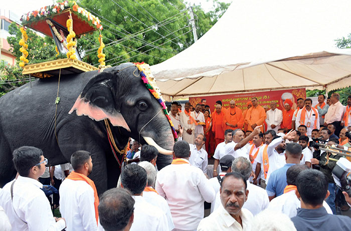 The procession also featured a mechanical elephant carrying a portrait of Basaveshwara, an artfully decorated sarot in which a statue of Basaveshwara was taken and playing of music by English Band.