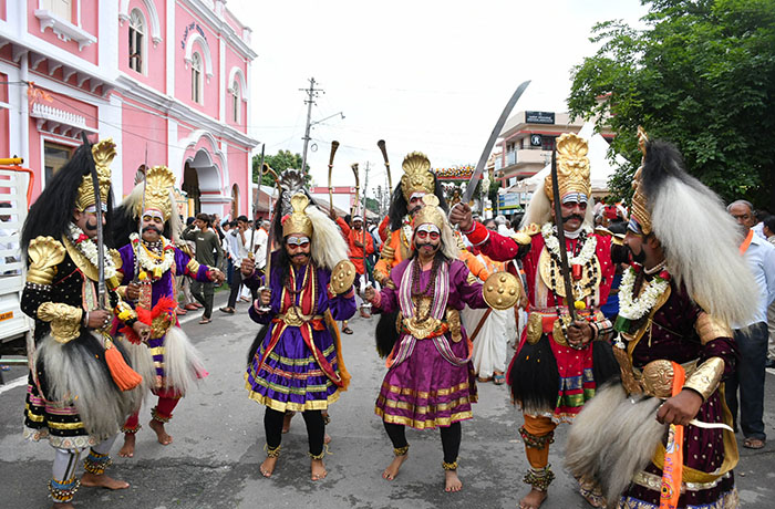 The procession was accompanied by a host of cultural and folk troupes including Nandi Dhwaja, Puja Kunita, Kamsale, Mangalavadya, Tamate, Nagaari etc.