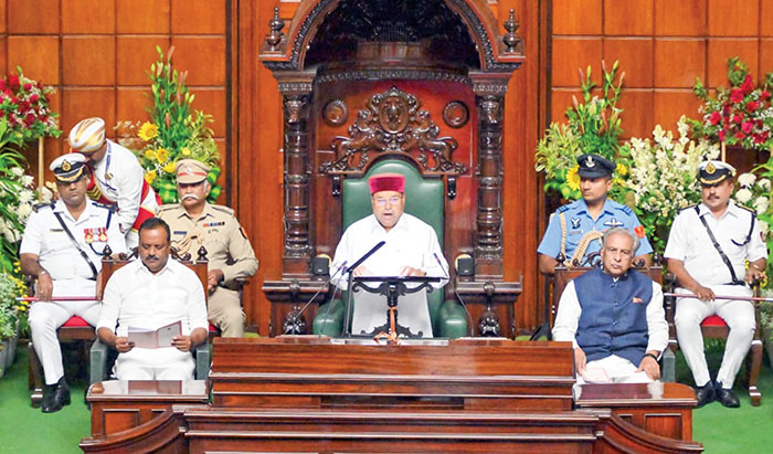 The Governor delivered a brief statement, saying: “My Government is committed to doubling the State’s economic, social and physical development. Jai Hind, Jai Karnataka,” before abruptly ending the address.