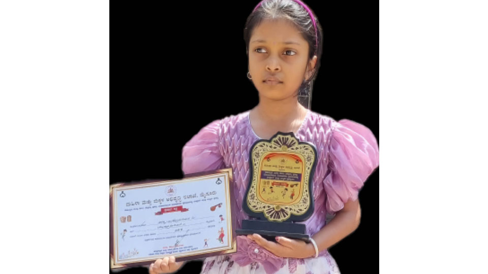 Mysuru: A. Chirasvi Balasubramanian, a 2nd standard student of Pramati Hillview Academy, Kuvempunagar, Mysuru, was honoured with the District-level Award for Exceptionally Talented Children under Hoysala and Keladi Chennamma Award Scheme given by the Women and Child Development Department, Mysuru, at an event held at Maharshi Valmiki Bhavana, Vijayanagar 2nd Stage in city recently.